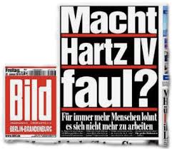 Das größte Saublättchen und eine bösartige Hetzschrift gegen HartzIV ist übrigens die Bildzeitung. Nur mal ein paar Beispiele: